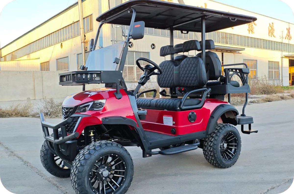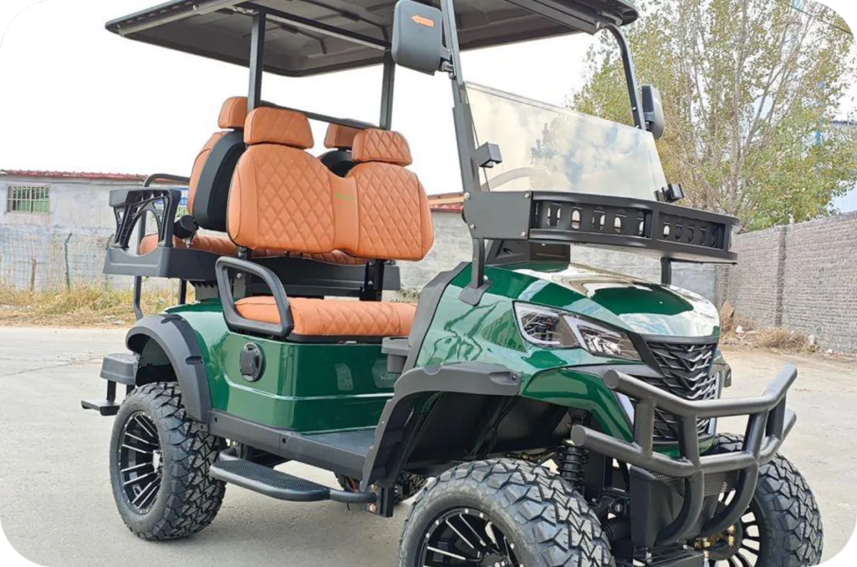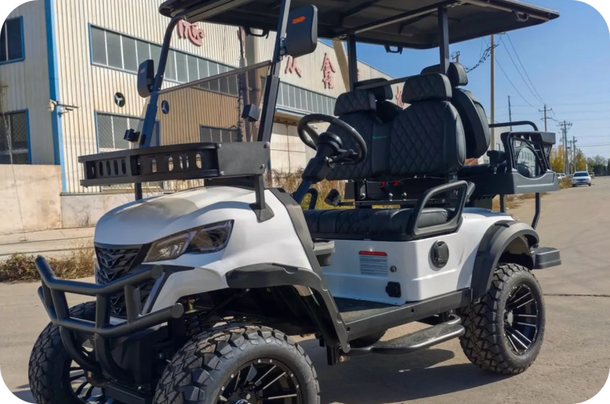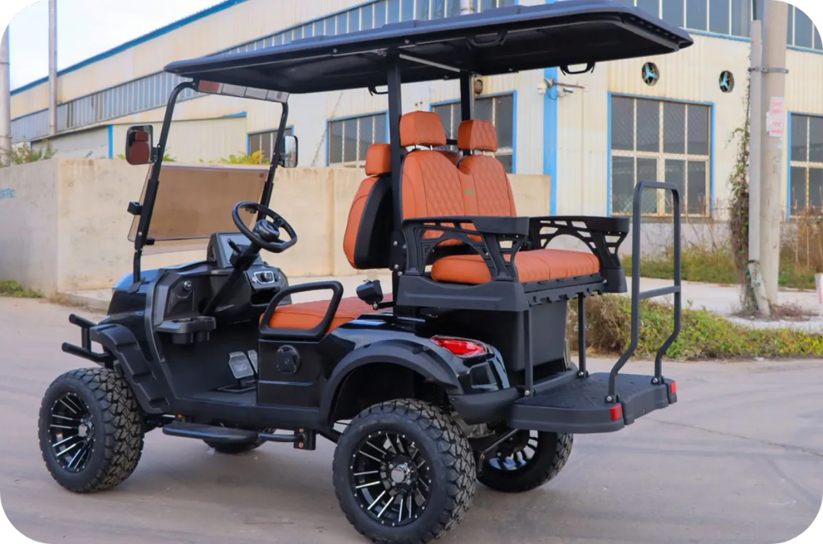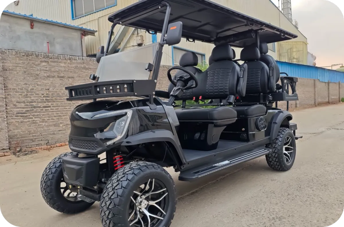 all-terrain tires and luxury quilted seating. Available in 4-seater and 6-seater configurations.