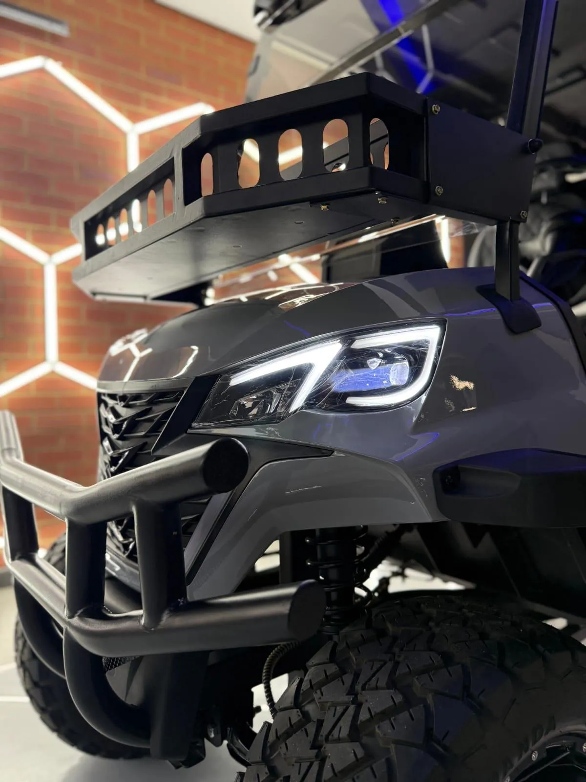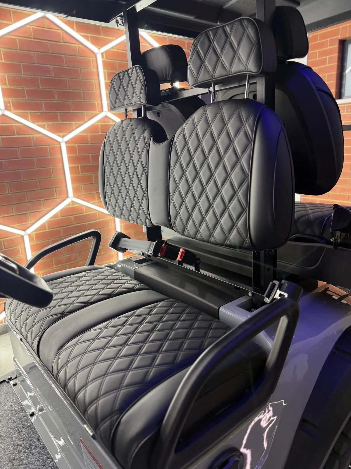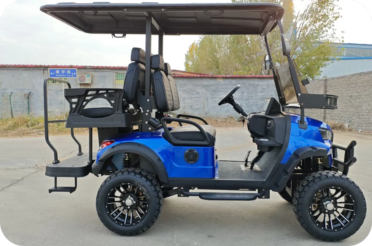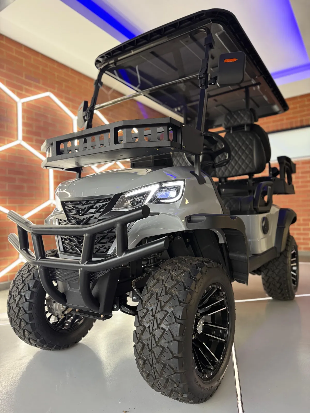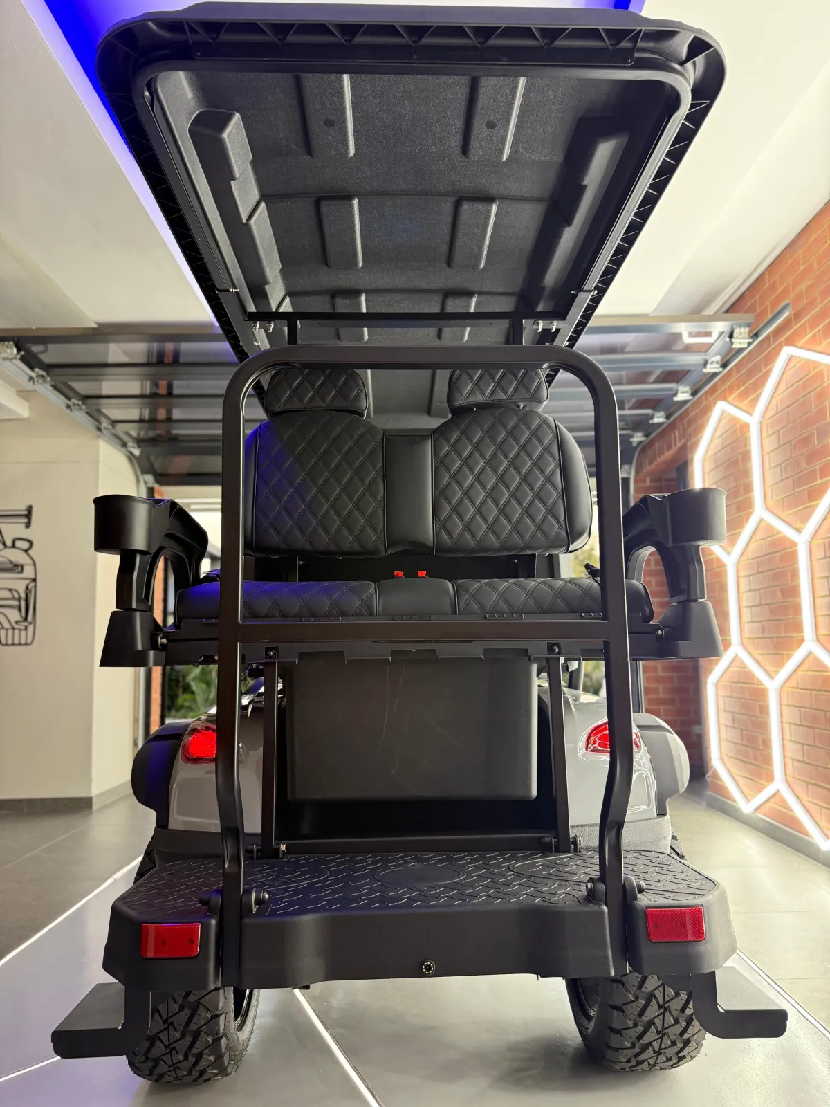 all-terrain tires and luxury quilted seating. Available in 4-seater and 6-seater configurations.